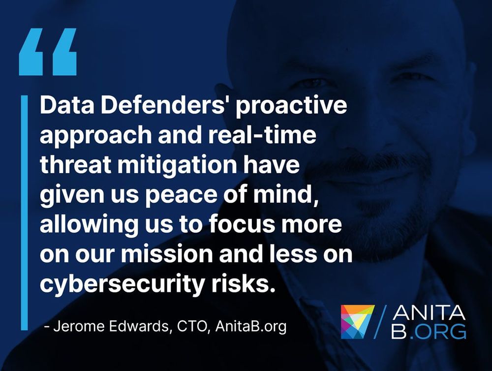 "Data Defenders' proactive approach and real-time threat mitigation have given us peace of mind, allowing us to focus more on our mission and less on cybersecurity risks." Jerome Edwards, CTO, AnitaB.org